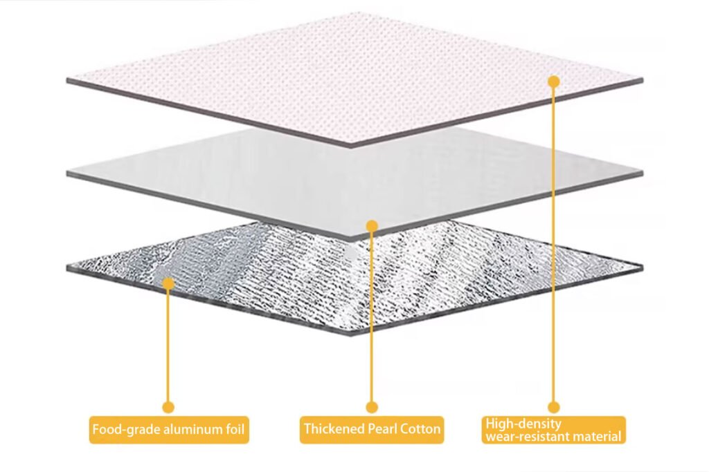 External abrasion-resistant layer + thickened pearl cotton + waterproof aluminum foil. This triple-layered insulated cooling structure maintains food freshness during shopping and delivery.