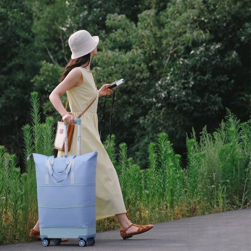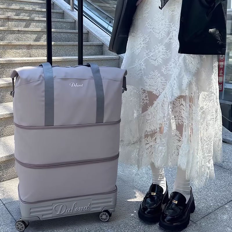 22 inch rolling duffle bag is foldable and expandable, exquisite compact appearance and large capacity at the same time.