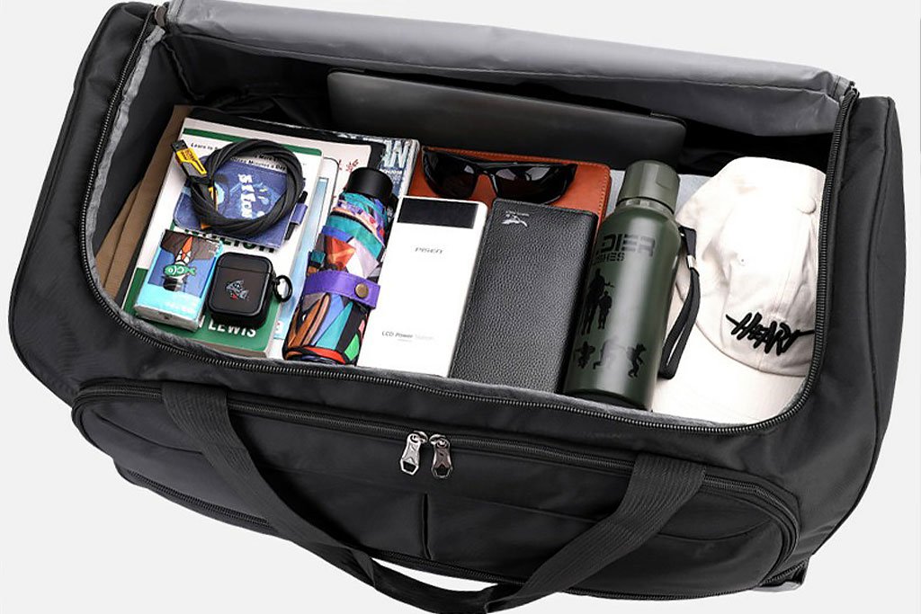 40 inch rolling duffle bag with trolley is suitable for 3-5 days short distance business trip with office supplies and clothes.
