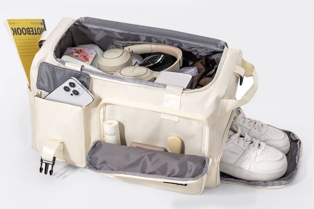 367 women’s duffle bag is designed with separate shoe compartments, shoes are stored separately from the main bag, clean and hygienic.