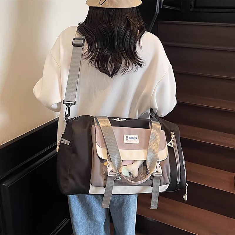 Yes. Women’s Overnight Duffle Bag not only has ample capacity but also maintains a stylish appearance. It is equipped with a hidden capacity – expansion design. For daily use, you can fold up the expandable part to keep a compact size for easy carrying. When you need to stay overnight, you can use the expanded size to store overnight clothes.
