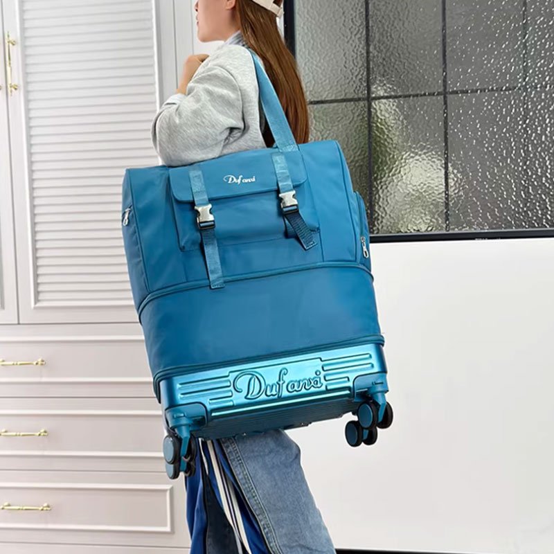 Yes, you can. We can design duffle bag with wheels women’s with silent wheels, removable wheels, fixed wheels, universal wheels and so on, and we can customize the overall size, color, printing process, material and so on according to your needs.