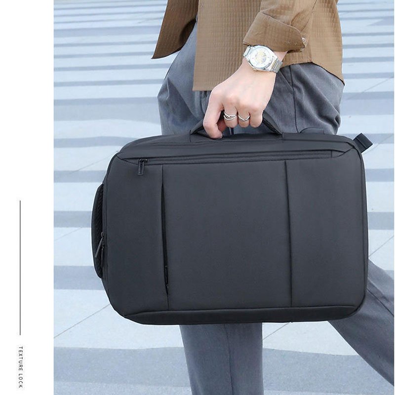 Tired of carrying too many backpacks while traveling or on business trips? The Laptop Backpack Sample 08 features a luggage handle attachment that securely locks onto your suitcase handle, eliminating the hassle of juggling multiple bags.